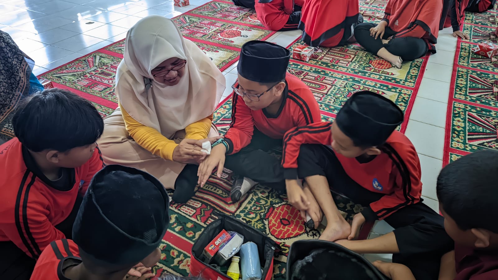 * Pertolongan Pertama Pada Kecelakaan (P3K) Sederhana : Siswa dilatih menangani luka ringan, mimisan, hingga pertolongan pertama pada kasus pingsan.