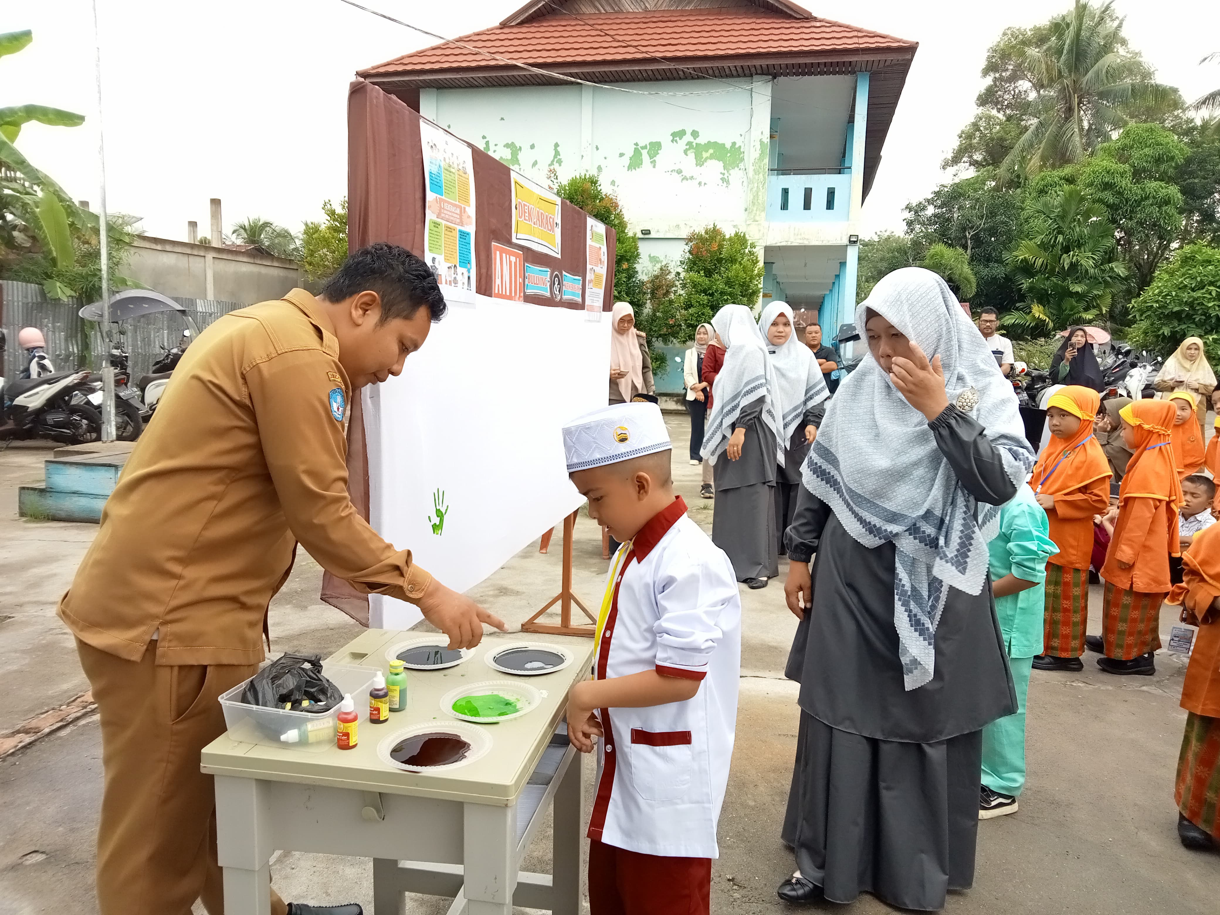 Maka Kegiatan ini merupakan bentuk deklarasi sekaligus menyampaikan kepada ananda jika terjadi suatu tindakan kekerasan disekolah, maka ananda berhak dan boleh melaporkan ke guru yang berada di lingkungan sekolah.